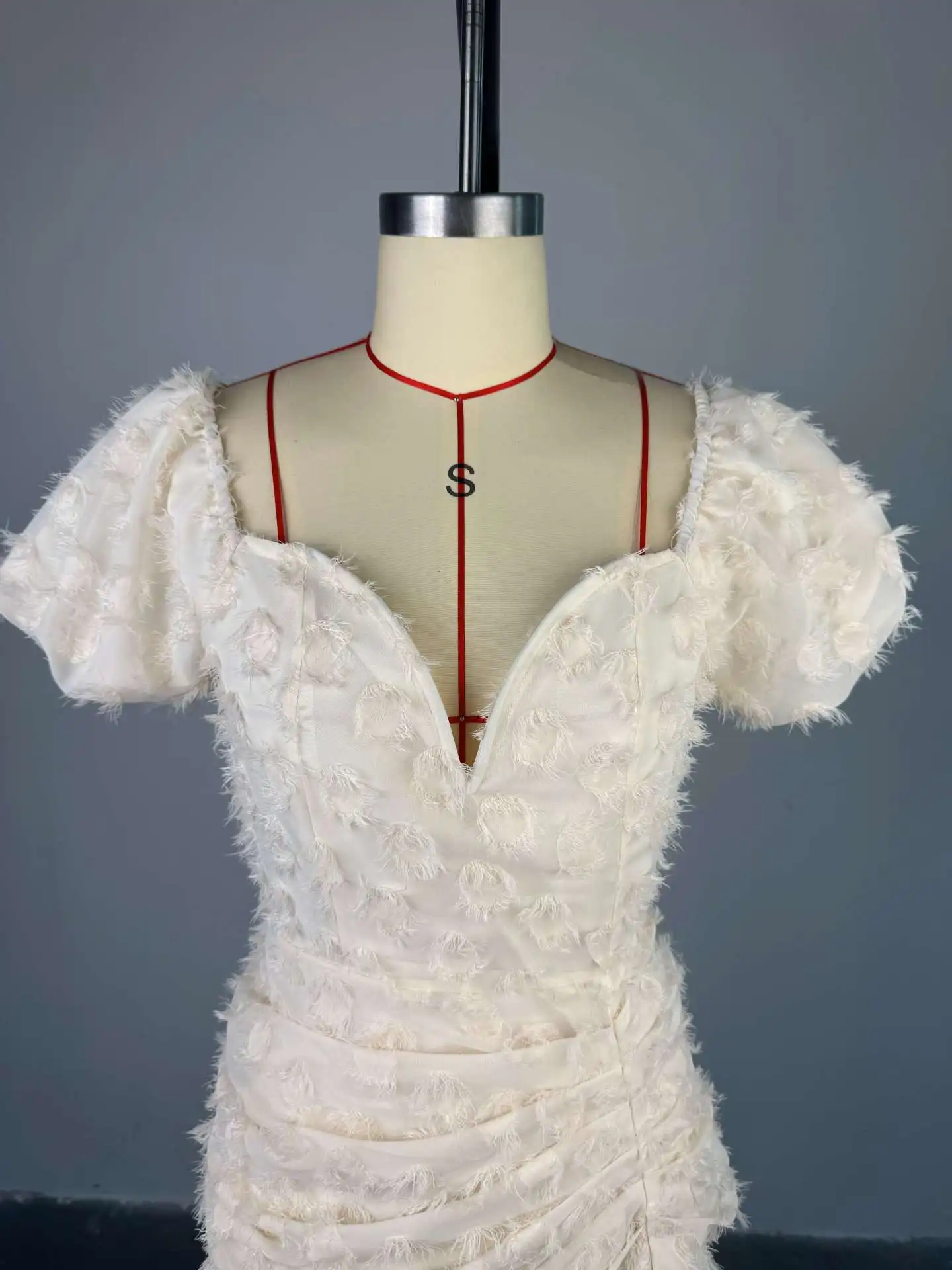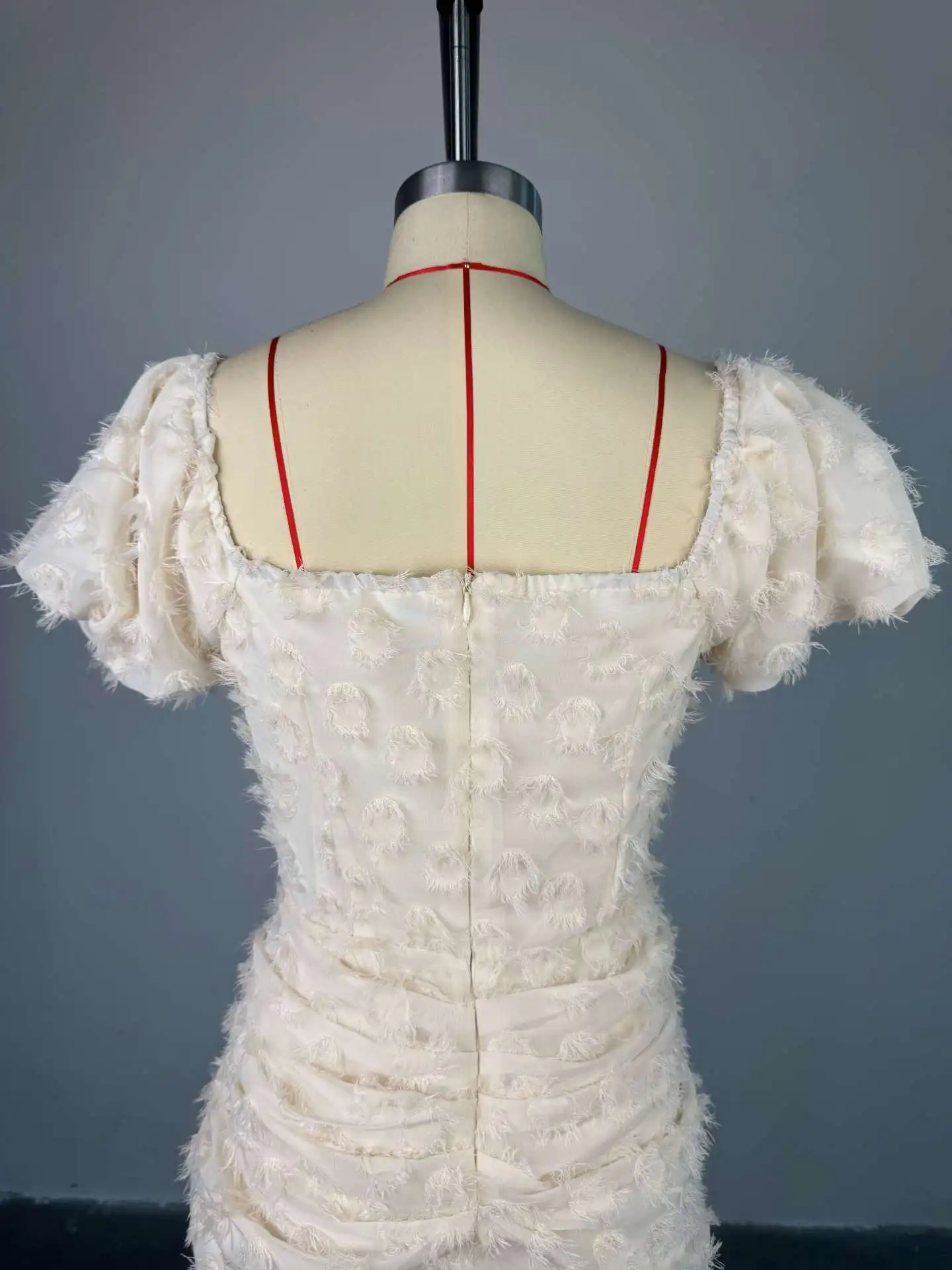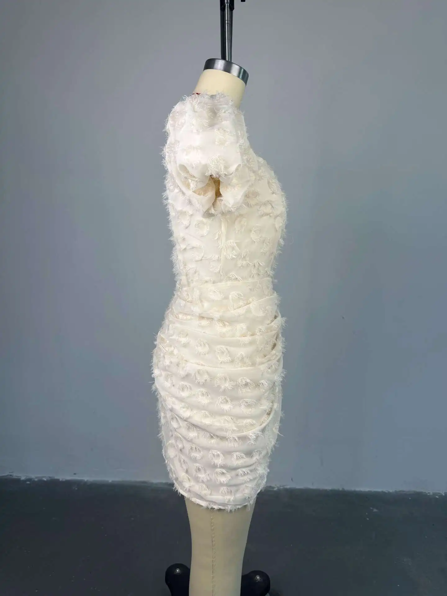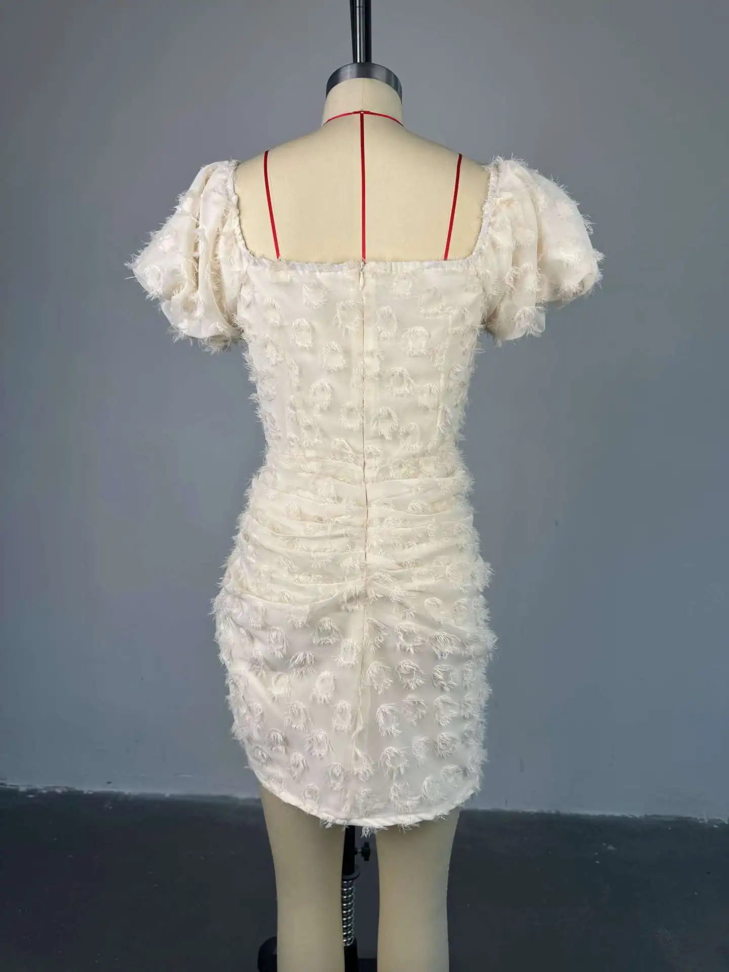 2026 Summer New Sexy V-neck Bubble Sleeve High Waist Slimming Pleated Short Dress